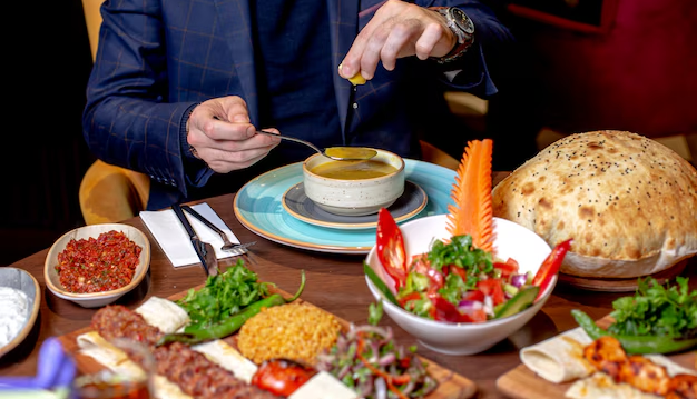 - Beverage – Typically tea, to conclude the meal.
