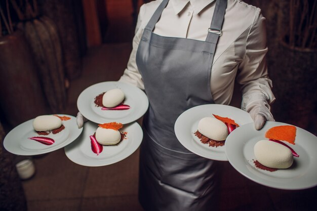 This training course demonstrates a practical technique for carrying four plates to improve efficiency in the dining room. The instructor explains the process step-by-step and emphasizes the importance of practice for mastering this skill.